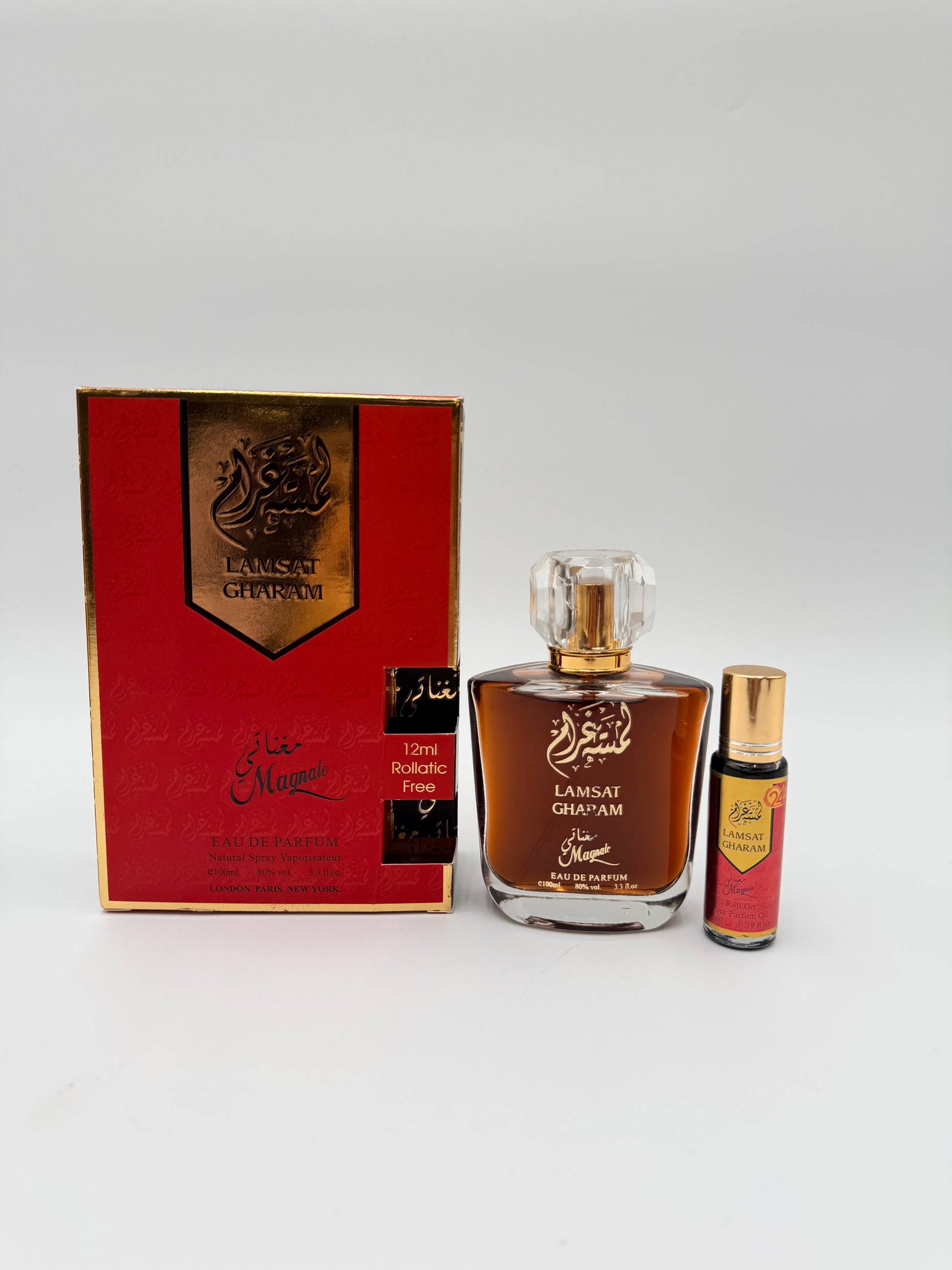 Magnatea – Lmsat Gharam is a sensual, enchanting fragrance blending sweet florals, warm vanilla, and soft musk. Romantic and alluring, it leaves a lasting impression.